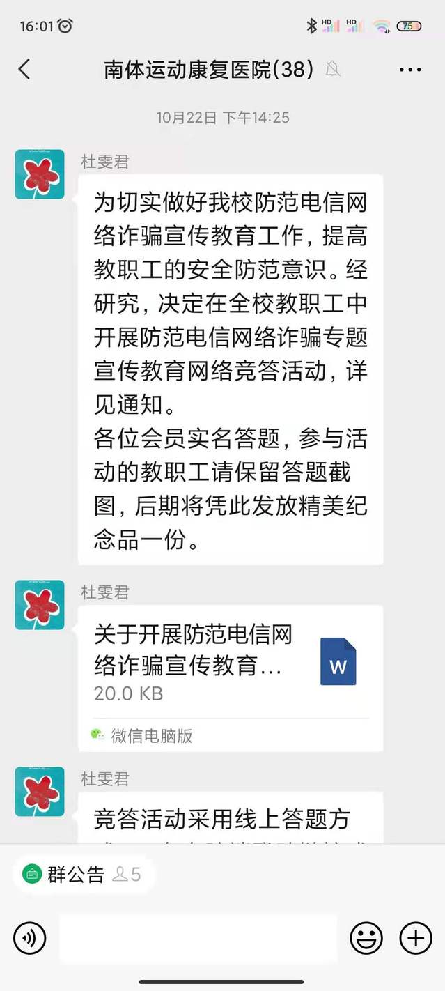运动康复医院积极响应学校网络安全宣传周活动安排,主动组织医务人员参加江苏教育网信网络知识竞答,听取由学校网络安全与信息化领导小组办公室组织的网络安全知识讲座,观看江苏省教育系统网络安全宣传周校园日活动直播,专题学习习近平主席关于网络安全和信息化的重要讲话。通过学习大家充分认识到网络安全的重要性和复杂性,工作和生活中要提高警惕,预防网络诈骗,保障个人和家人的人身和财产安全。