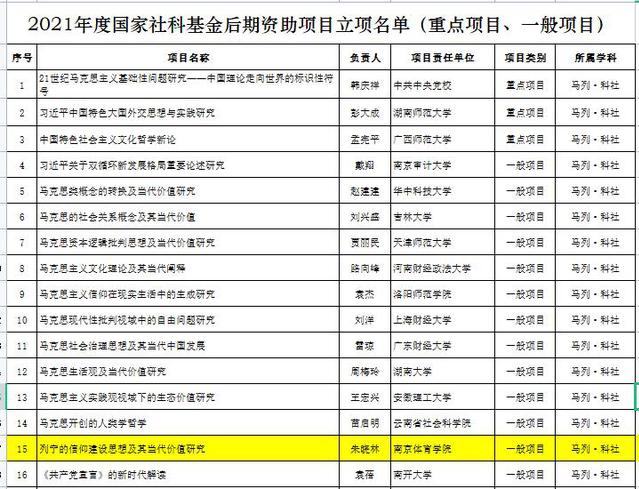 日前,全国哲学社会科学工作办公室公布了2021年国家社科基金年度项目评审结果。马克思主义学院蒋艳教授申报的《新时代高校爱国主义教育话语创新研究》获批国家社科基金年度项目立项(一般项目,资助20万),朱晓林博士申报的《列宁的信仰建设思想及其当代价值研究》获批国家社科基金后期资助暨优秀博士论文出版项目立项(一般项目,资助25万)。