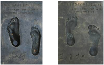 骆晓娟同志和赵玉超同志在冠军大道上的脚印