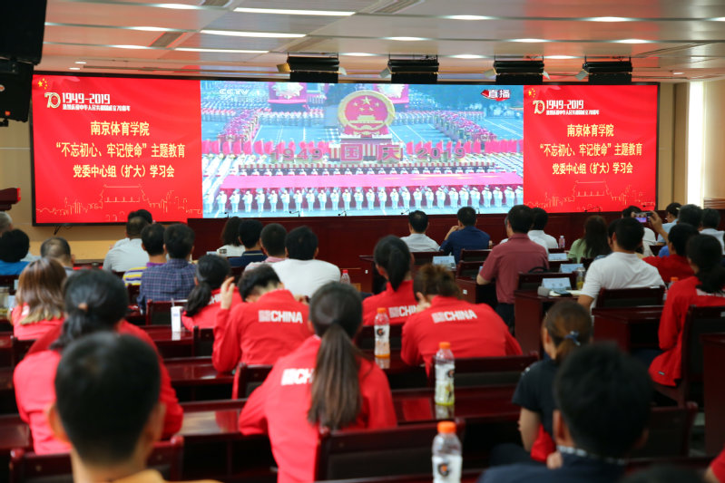 为进一步深化“不忘初心、牢记使命”主题教育,感受中国共产党的伟大奋斗历程和新中国70年来的辉煌成就,激发师生员工的爱国热情,加强爱国主义教育,增强学校各运动队的团队凝聚力和战斗力。10月1日上午,36365最新线路检测中心组织全体党委中心组成员和全体教练员、运动员,以及运动队管理人员,分别在五个会场同步收看庆祝新中国成立70周年庆祝大会以及阅兵式。