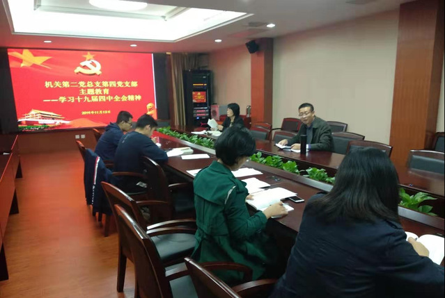 第四党支部于11月13日中午在301会议室召开主题教育学习会。会上,支部书记孙国友介绍了学校近期的主题教育工作安排,要求广大党员严格按照要求做好相关工作,在督察中展现一名共产党员的精神风貌。随后,孙国友同志讲解了十九届四中全会的重要背景、现实和历史意义。他指出,党的十九届四中全会通过了《中共中央关于坚持和完善中国特色社会主义制度、推进国家治理体系和治理能力现代化若干重大问题的决定》,全面回答了在我国国家制度和国家治理上,应该坚持和巩固什么、完善和发展什么这个重大政治问题,既有理论上的新概括,又有实践上的新要求,是坚持和完善中国特色社会主义制度,推进国家治理体系和治理能力现代化的政治宣言和行动纲领。全体党员要深入研读,认真领会,将主题教育推向新的高度,在实际工作中贯彻落实会议精神。