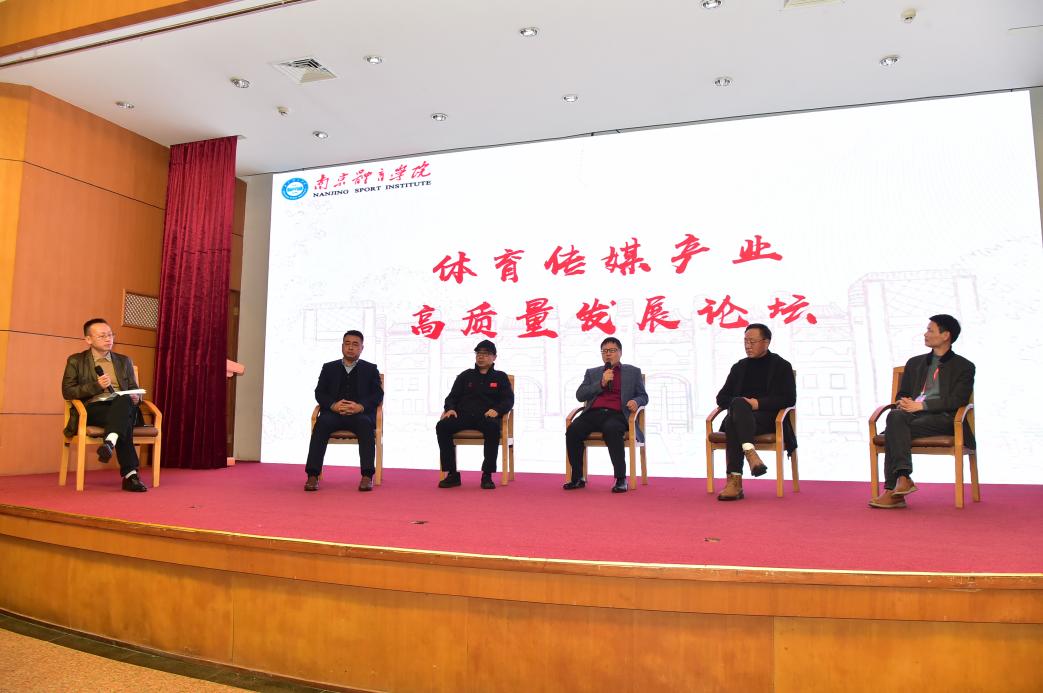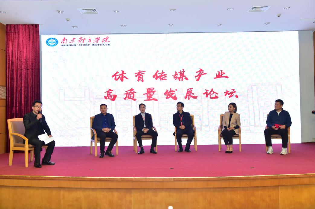 论坛第一场由体育教育与人文学院副院长(主持工作)王凯主持,论坛就新媒体技术与融媒体发展问题、体育传媒产业人才培养面临的挑战进行交谈。南京财经大学新闻与传播学院院长宋祖华,江苏省广播电视总台体育休闲频道总监肖强,省体育产业指导中心副主任徐光辉,江苏有迈体育发展有限公司董事长陶婷婷,江苏篮球协会副会长、秘书长张世林参与论坛并作发言。