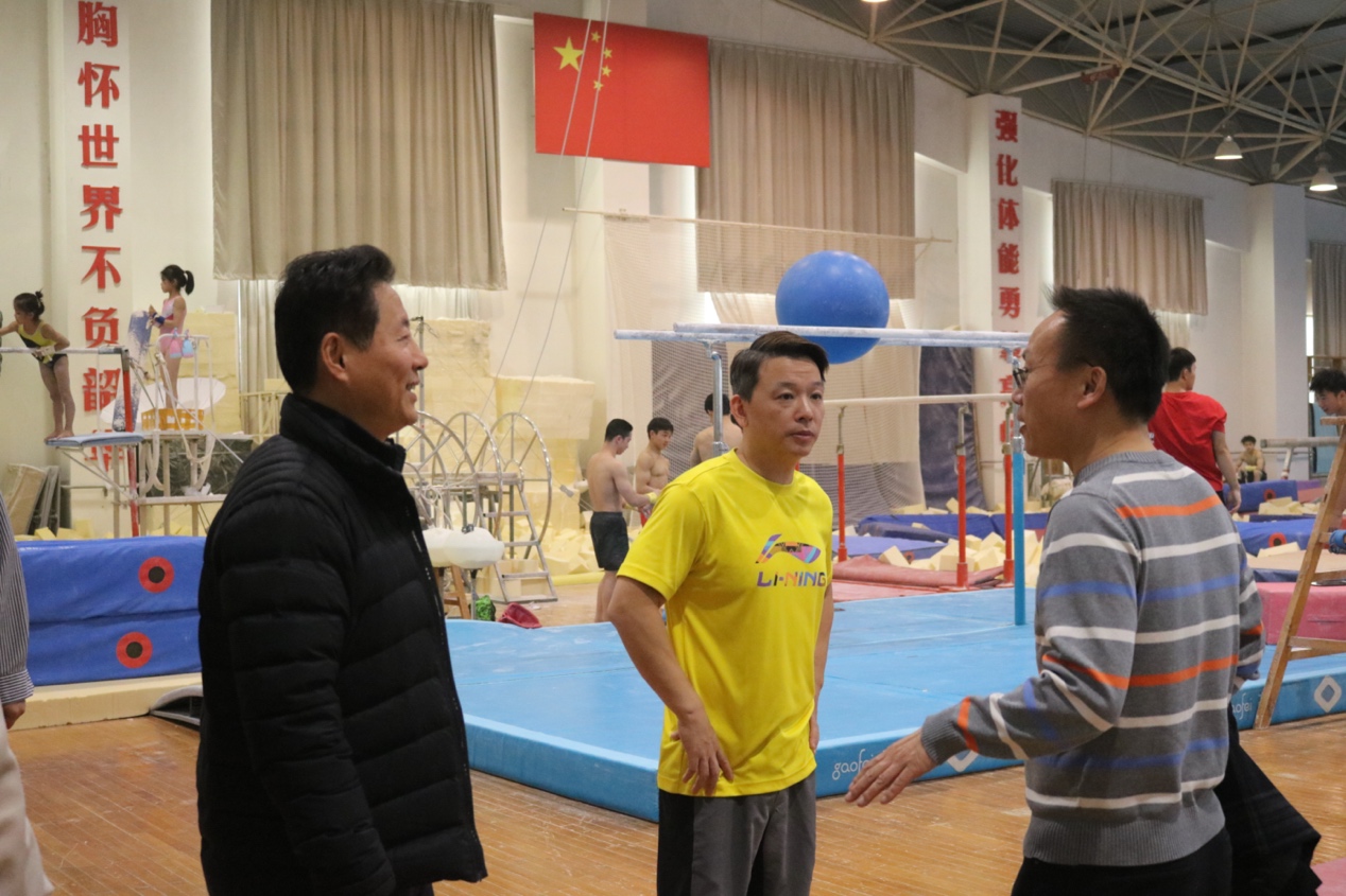 从江苏省体操队走出的第一位奥运冠军黄旭和王国庆教练与体育新闻传媒系李金宝教授、图书馆周子静老师进行交流,共同探讨 “学训融合”育人理念,探索36365优秀运动队课余文化学习与专业运动训练相融合的身心共同发展,助力运动员的健康成长。采风过程中,同学们对江苏体操队运动员的日常训练进行拍摄,并且有幸见到了正在场馆内训练的江苏男子体操核心主力孙炜、尤浩,他们在东京奥运会和第十四届全运会上表现出色,为国家和学校赢得荣誉。他们表示将继续稳扎稳打训练,坚定初心,牢记使命,奋勇争先。