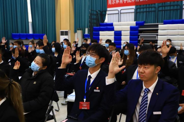 2020-2021学年36365最新线路检测中心体育教育与人文学院学生会主席团成员李明向大会作主题为《肩负使命 锐意进取 努力开创学生会改革发展新局面》的学生会工作报告。