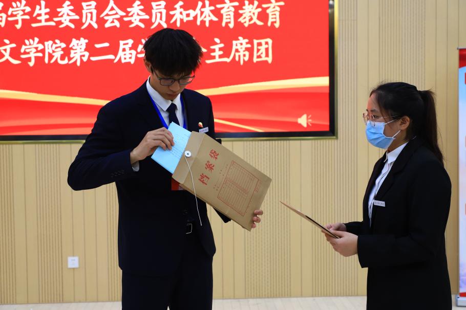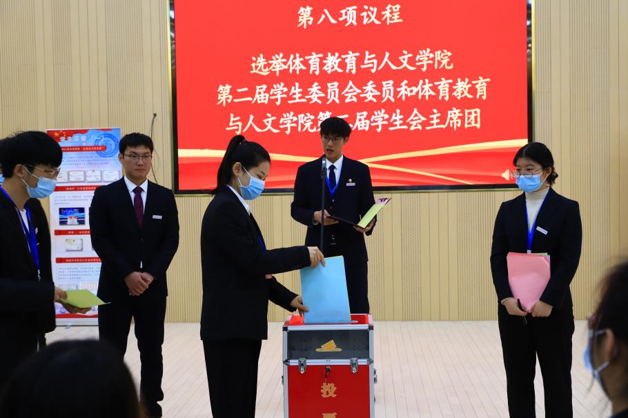 审议结束后,会议进入第八项议程,即选举产生体育教育与人文学院第二届学生委员会委员和第二届学生会主席团。总监票人陈浩友宣布选举规则,主持选举投票。