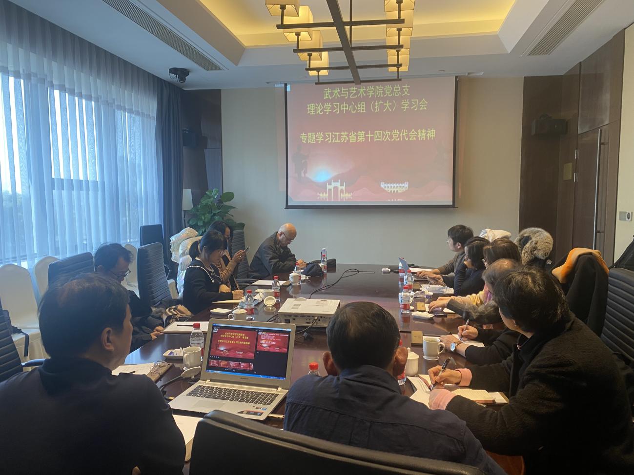 12月4日,武术与艺术学院党总支理论学习中心组在扬州市江都区召开专题学习会,结合党史学习教育实践教学,缅怀革命英烈,感悟入党初心,在传承中汲取奋进力量;结合落实中央、省委和校党委部署以及学院自身发展,全体与会人员对党的十九届六中全会和江苏省第十四次党代会进行了专题深入学习,学习会由武术与艺术学院党总支书记殷怀刚主持并领学。