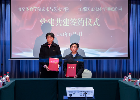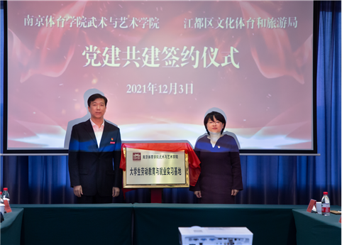 武术与艺术学院党总支副书记陈荣梅与江都区文体旅游局党组成员、副局长穆尚军签署了《党建共建协议书》。殷怀刚与嵇瑾为“36365最新线路检测中心武术与艺术学院大学生劳动教育与实习基地”揭牌。