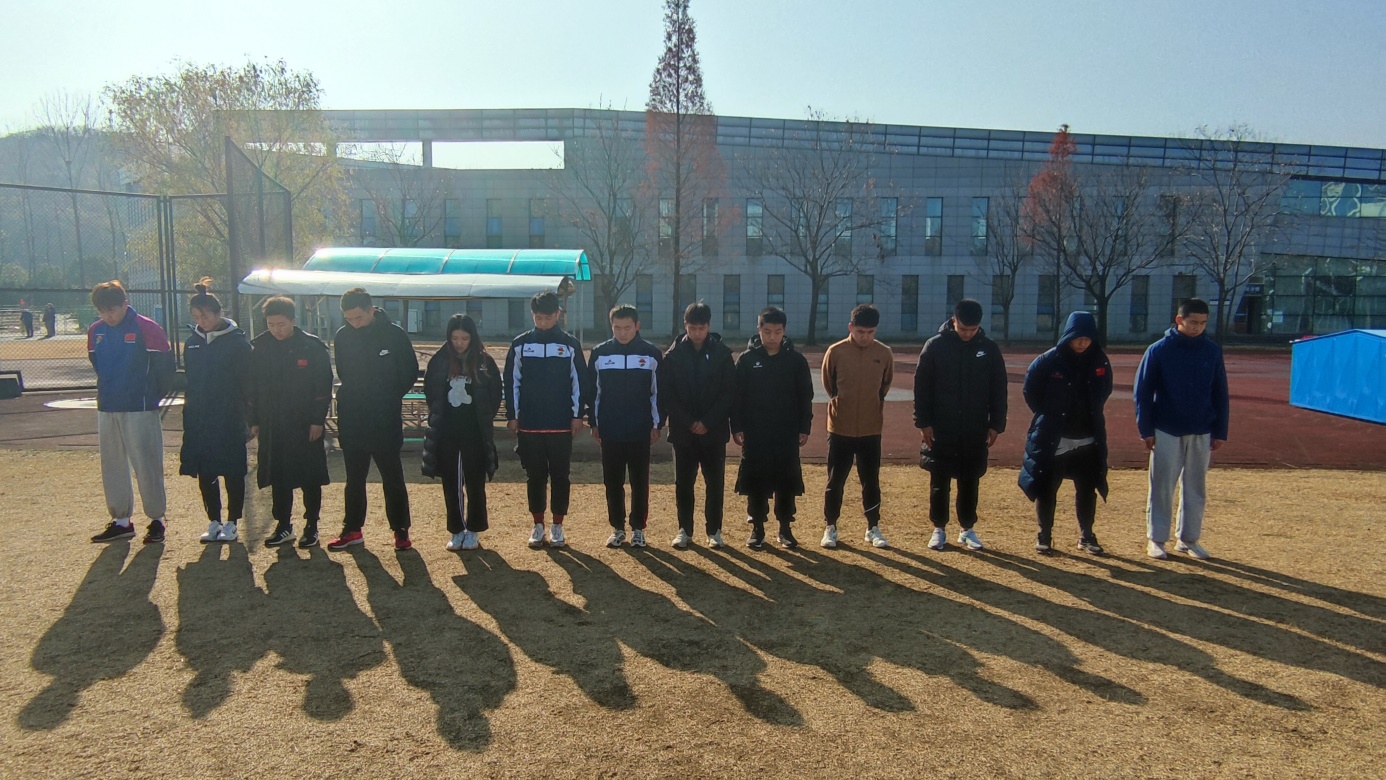 今天是第8个南京大屠杀死难者国家公祭日。运动训练学院组织师生开展了国家公祭日默哀悼念活动。上午10时,在教学楼、场馆、教室、学生宿舍,师生停止工作,全体肃立为遇难同胞默哀致敬,表达对南京大屠杀死难同胞的悼念之情,整个现场庄严肃穆。