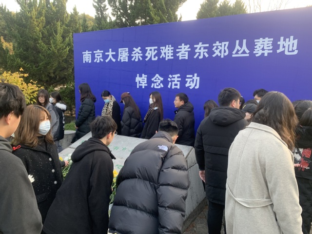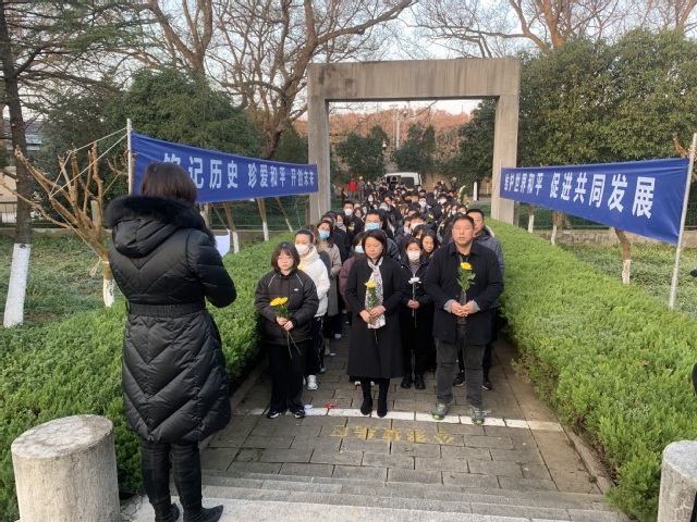 南京大屠杀惨案发生距今已经84年了,今年的12月13日是我国第八个国家公祭日。为悼念南京大屠杀死难者和所有惨遭日本侵略者杀戮的死难同胞,缅怀为中国人民抗日战争献出生命的革命先烈和民族英雄,牢记侵略战争给中国人民乃至世界人民造成的深重灾难,宣示牢记历史、不忘过去、珍爱和平、开创未来的坚定立场,今天(12月13日)来自直属单位党总支的教职工代表、校院两级团干部代表、团员青年代表、校第八期“青马工程”培训班学员、大学生研习团成员以及自愿参加的师生一大早来到侵华日军南京大屠杀遇难同胞东郊丛葬地举行悼念仪式。仪式由校团委书记阚妮妮主持。
