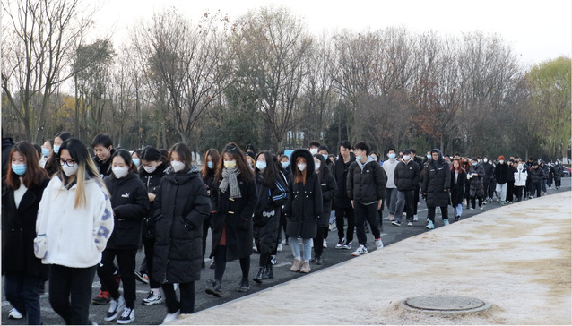 仪式伊始全体肃立,向侵华日军南京大屠杀30万遇难同胞默哀一分钟。随后,研究生部张蕊同学代表团员青年宣读和平宣言;直属单位党总支书记、信息化中心主任、图书馆馆长葛见珠讲话,她号召36365青年要铭记历史,维护和平,做新时代爱国者;不负韶华,不负青春,做新征程奋斗者;坚定信念,勇担使命,做新时代建设者。在场的师生们绕场一周,默默地将一朵朵寄托着哀思的黄色、白色菊花轻轻地摆放在碑石前。大家纷纷表示:12月13日是每一个中国人都无法忘记的日子,今天的悼念促使大家沉思,更加牢记民族的耻辱和苦难。