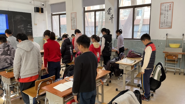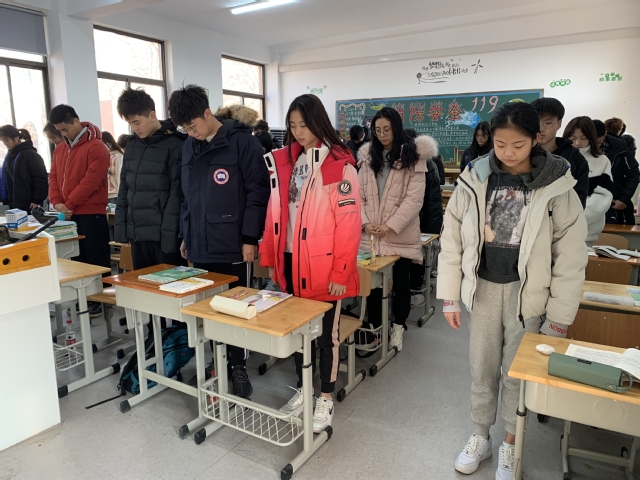 10.01分开始,南京全城防空警报响起。各班暂停授课,任课教师组织学生起立,师生共同向南京大屠杀死难者默哀。警报声后,任课教师向班级学生介绍了国家公祭日的由来,号召大家要牢记中华民族这一段惨痛的历史,奋发图强,认真学习训练,为实现中华民族伟大复兴的中国梦贡献力量。