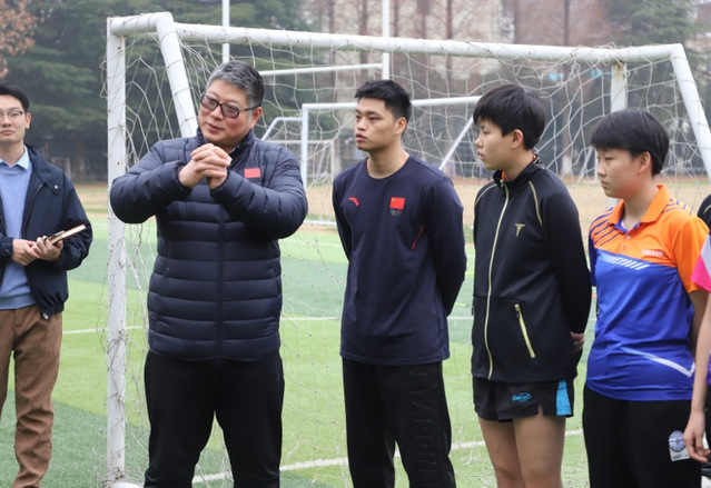 乒乓球队领队杨干在现场与同学们进行亲切交谈。从乒乓球队的前世今生、辉煌历史到运动员们的训练情况,杨领队都做出了详细的介绍。此外,李金宝教授还对学生进行场外技术指导,及时提出拍摄建议,辅导学生更好地开展采风活动。