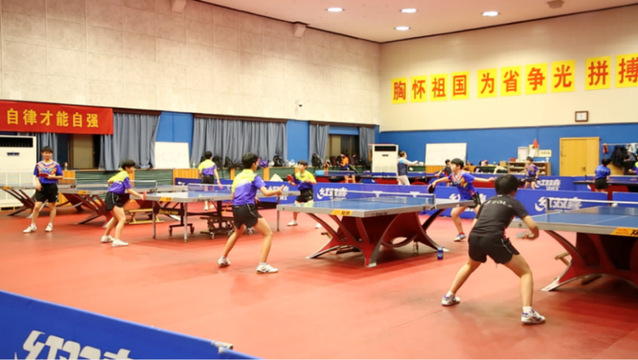 面对我们的镜头,小运动员们眼神坚定毫不动摇,依旧专注于训练不松懈。场馆内随处可见他们矫健的身姿。乒乓球拍挥动之间,不难看出他们训练的刻苦。虽然训练场上严肃凌厉,出拍毫不犹豫,颇有专业运动员杀伐果断的风采。 进入基地场馆时,神鹰乒乓球队的小运动员们已经开始了下午的常规训练。整齐的设施、温暖的照明、划一的队服以及朝气的面孔,热气腾腾的场面深深地打动了前来采风的新闻学生。