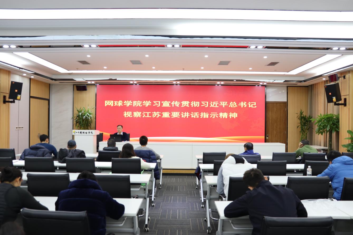 12月20日上午,网球学院召开全体教职工会议,集中学习习近平总书记在江苏调研考察重要讲话和重要指示批示精神,网球学院领导班子全体成员、全体管理干部、教练员和钟山公司中层管理人员参加会议。会议由网球学院直属党支部书记丁习明主持。