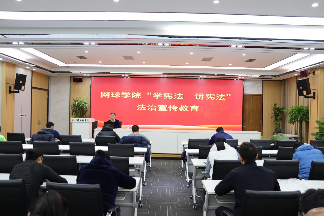 2021年12月4日是第八个国家宪法日,根据中央宣传部、司法部、全国普法办制定的《2021年全国“宪法宣传周”工作方案》文件要求,网球学院于12月20日上午开展了“学宪法,讲宪法”主题法治宣传教育活动。网球学院领导班子全体成员、全体管理干部、教练员和钟山公司中层管理人员参加会议。会议由网球学院直属党支部书记丁习明主持。
