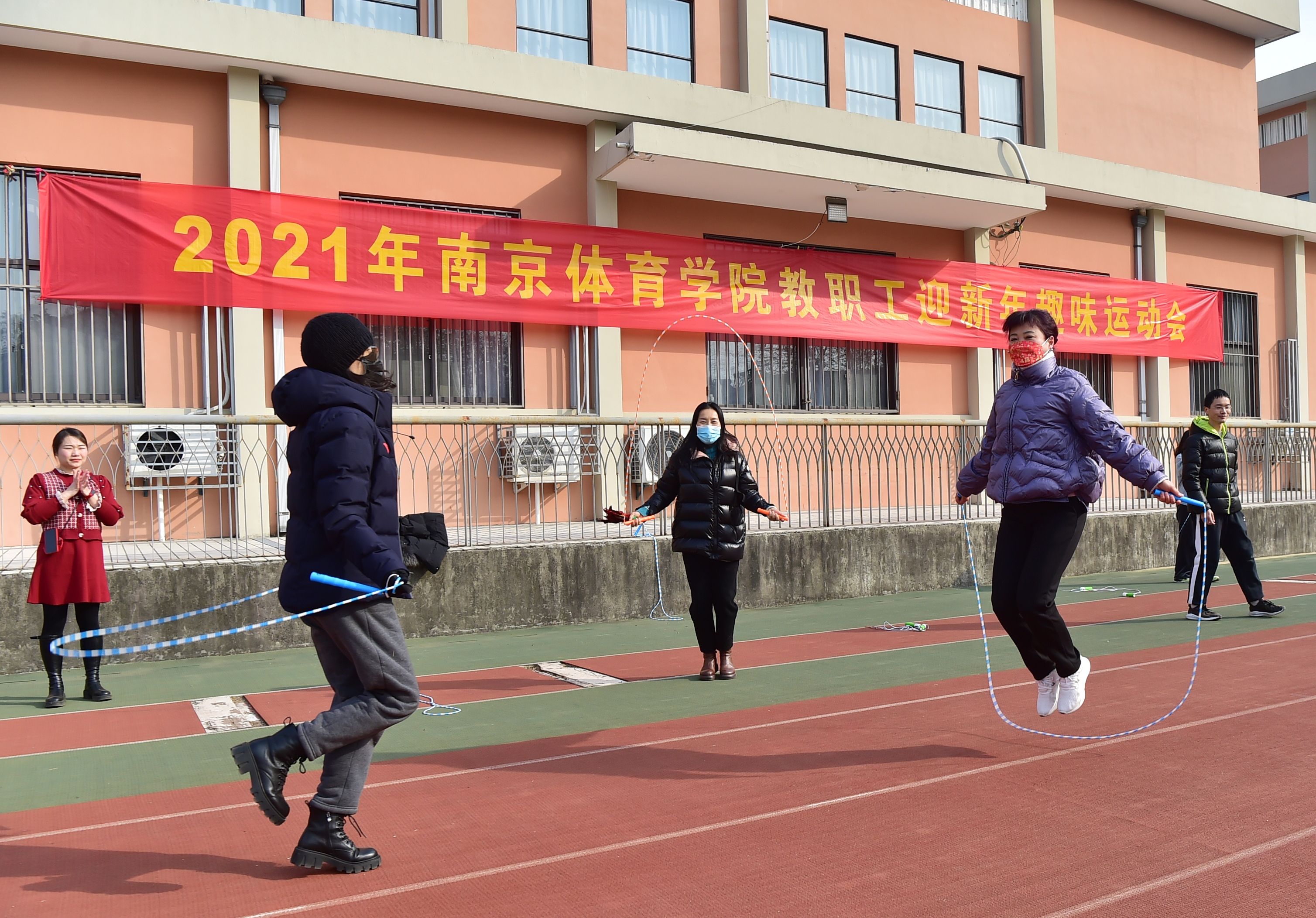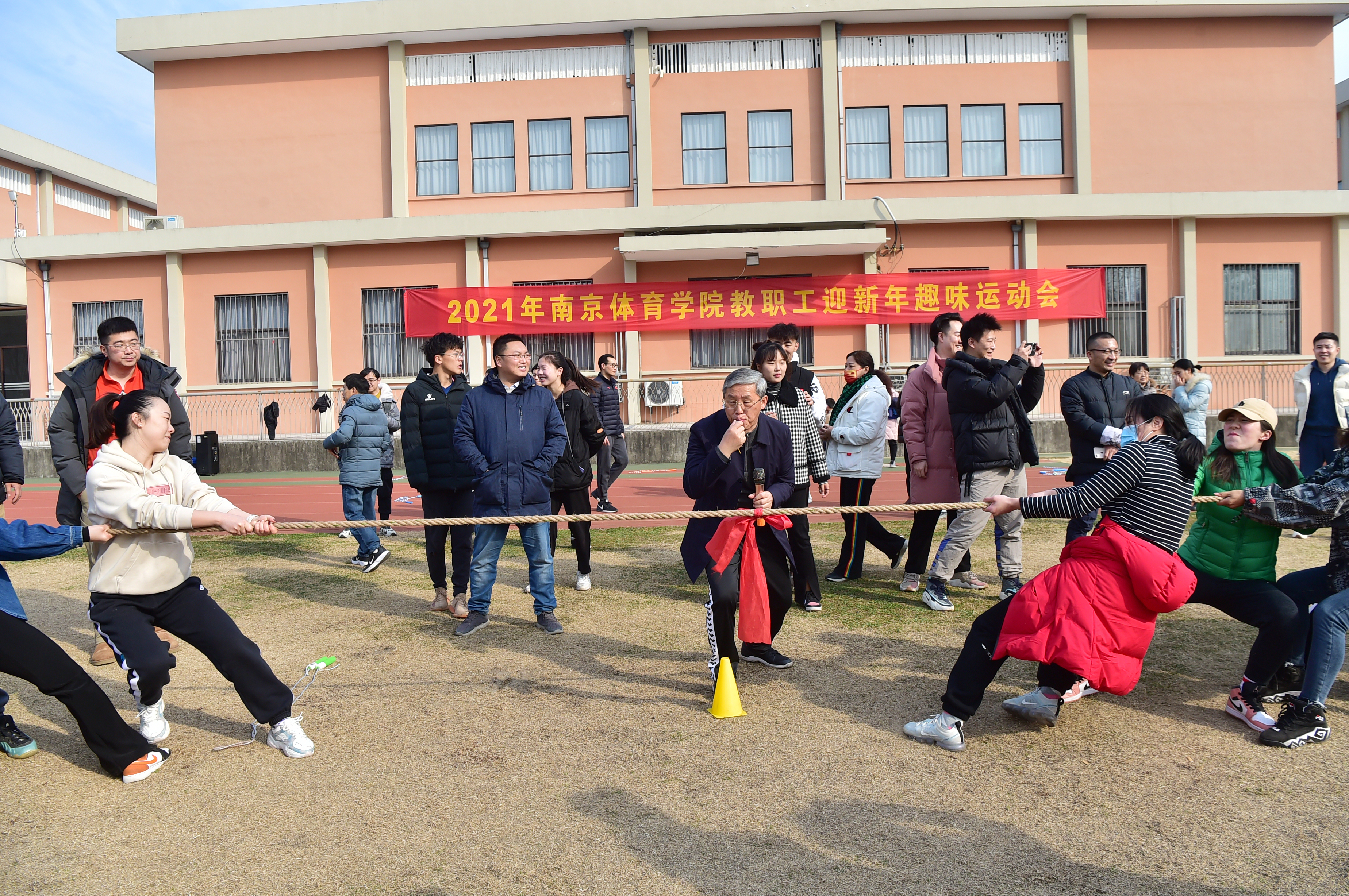 长跑结束后,全体人员前往教学田径场参加迎新年趣味运动会。趣味运动会分为拔河、踢毽子、跳绳等项目。大家以分工会为单位自行组队,现场气氛热烈,丰富多彩的节目和趣味十足的互动,极大地调动了参与者的积极性。