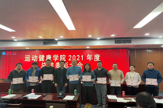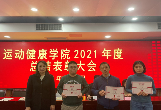 会上,党总支书记王猛为王侃等9位同志颁发了运动健康学院2021年度工作贡献奖证书、院长汤强为刘琳等7位同志颁发了优秀本科生导师证书、党总支副书记石红霞为景涛等4位同志颁发了优秀班主任证书。