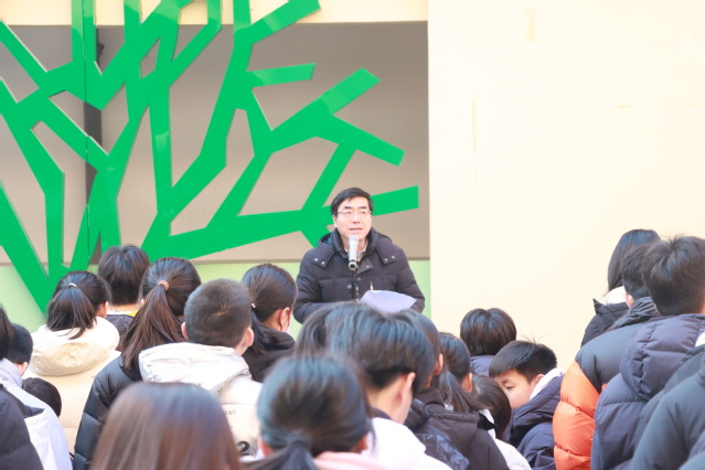 党总支书记、校长吴建华首先对同学们在新学期提出美好的祝愿和希望。他回顾了冬季奥运会中我国运动员顽强拼搏的事迹,希望同学们在为谷爱凌、苏翊鸣等奥运冠军喝彩的同时,更要看到他们背后辛苦的付出,看到他们身上爱国、奋斗的中国精神。吴建华希望同学们以冬奥健儿为榜样,心怀远大志向,自律、努力、脚踏实地、勇于突破,在新学期中寻找更好的自我。
