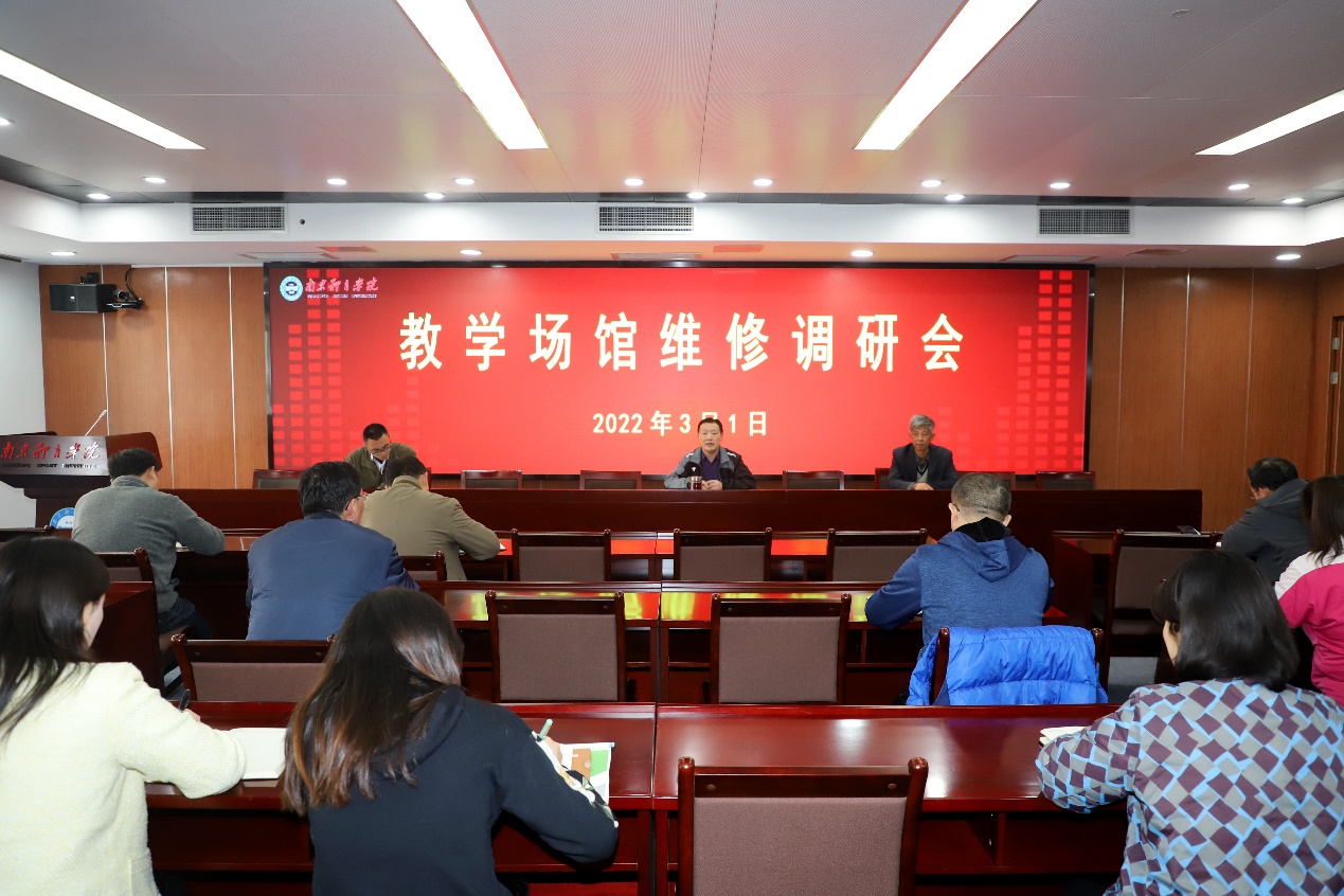 调研会上参会人员各抒己见,踊跃发言,就本部及仙林校区训练场馆、教学场馆、公寓等方面提出存在的问题和维修需求充分阐述了相关的意见与建议。