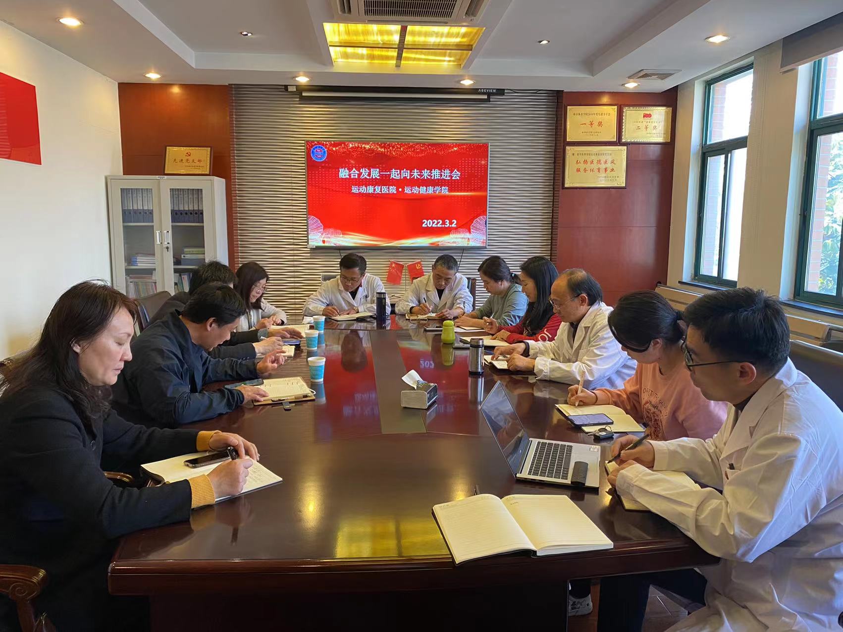 为贯彻落实学校促进各单位、各部门融合发展的要求,更好的促进运动健康学院与运动康复医院的融合发展,3月2日下午,运动健康学院党总支书记王猛、院长汤强、党总支副书记石红霞和副院长赵彦一行四人来到运动康复医院开展融合发展研讨交流。运动康复医院直属党支部书记、院长王家祥,副书记、副院长刘桂彩以及管理团队参加了会议。
