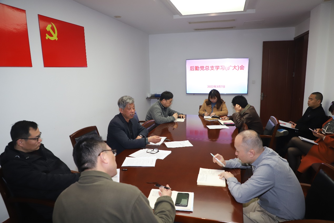 3月7日上午,后勤党总支召开学习(扩大)会议传达学习江苏省两会精神,后勤党总支委员、处级干部、党支部书记及各科室负责人参加会议。