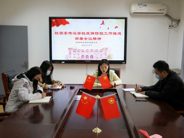 3月18日下午,校团委召开疫情防控工作推进会,校团委全体人员参加会议。会议由校团委书记阚妮妮主持。
