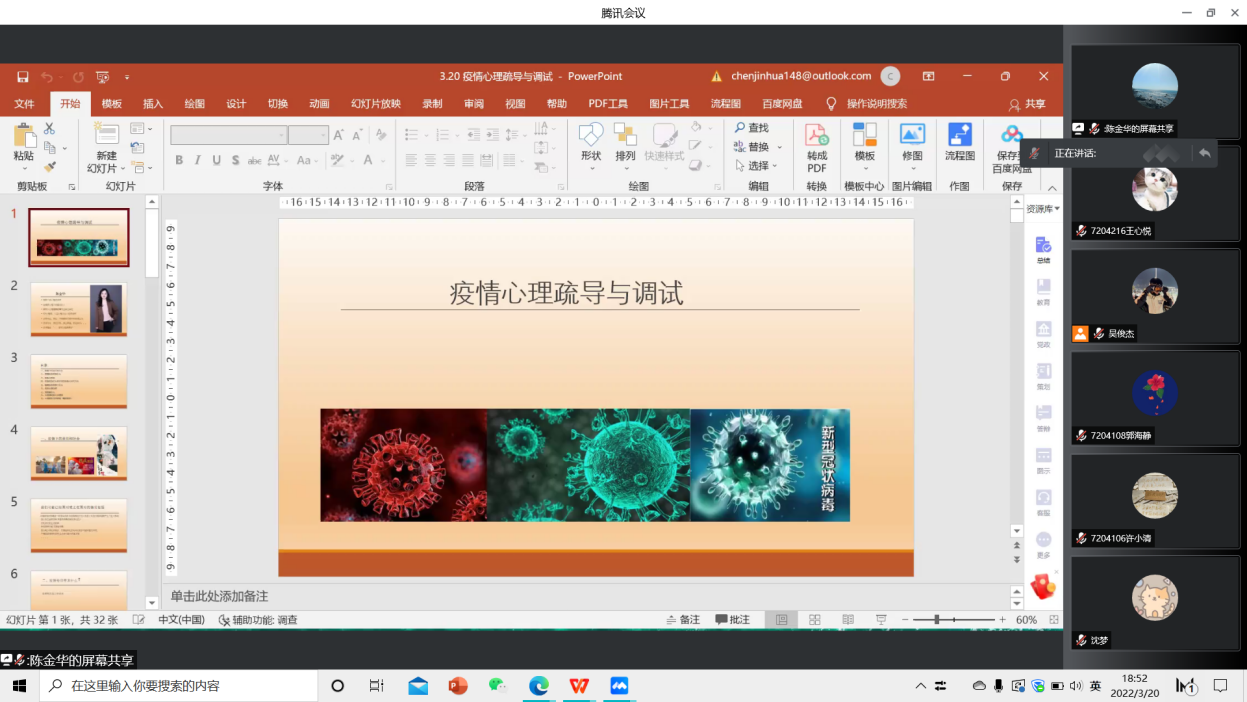 此次讲座以疫情期间的心理疏导与调试为主题,是学院结合当前学生需求开展的一次活动,有效帮助学生疏导与调适校园封闭管理期间产生的不良心理影响,引导学生更为关注自己的心理健康,实现健康成长。