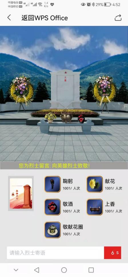 为进一步弘扬英烈精神,传承红色基因,开展爱国主义精神教育,结合疫情防控要求,4月5日,直属单位党总支通过文明、安全、绿色、环保的网络祭奠形式,开展了“致敬·2022清明祭英烈”线上祭扫英烈活动。