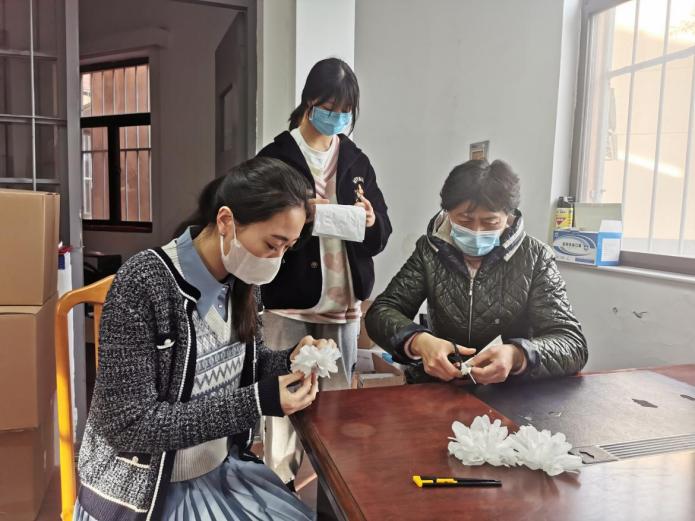 在院党总支副书记陈荣梅与团委副书记周晓旭老师的带领下,各团支部积极参与此次活动。在理论学习结束之后,武艺院的同学们通过做手工以及绘画手抄报等方式来祭奠清明英魂,同学们用准备好的白色纸巾、剪刀等物品,亲手制作纸白花寄哀思。同学们纷纷表示,自己亲手折的纸花,在兼顾经济、绿色与环保的前提下,寄托着大家满满的心意,一朵白花一个心愿,缅怀祭奠革命烈士。