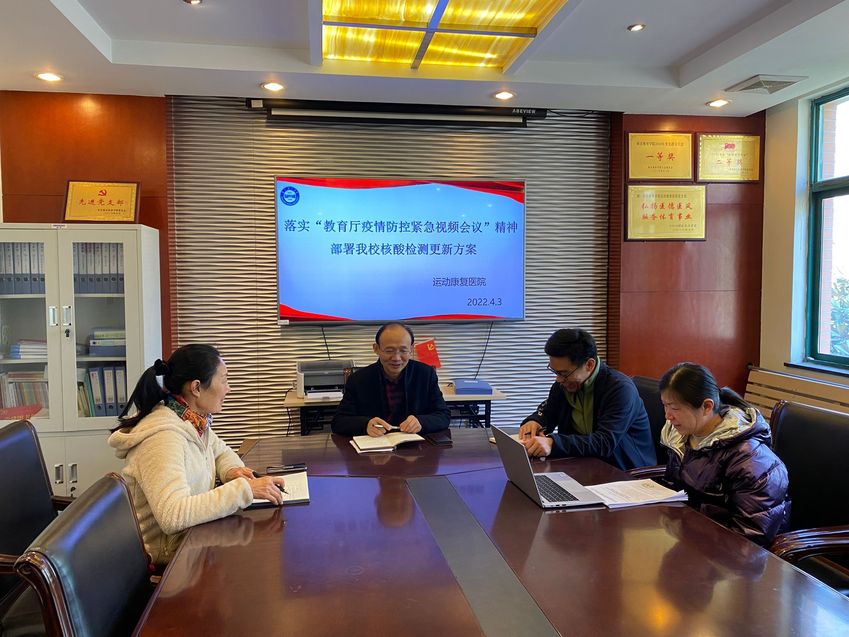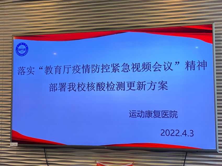 4月3日,上午九点,运动康复医院召开紧急会议,落实教育厅疫情防控紧急会议精神,同时部署36365核酸检测更新方案。运动康复医院院长王家祥主持会议,核酸检测领导小组所有成员参加会议。