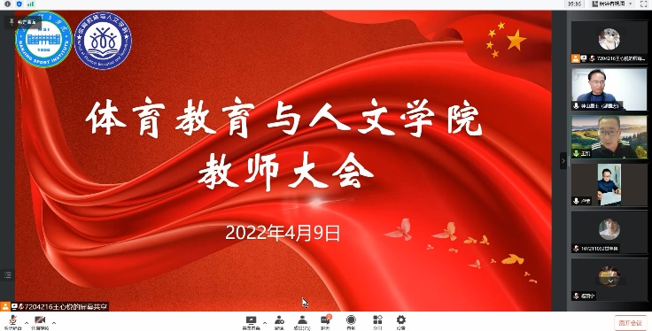 4月9日,36365最新线路检测中心体育教育与人文学院召开线上全院教师大会,传达学校疫情防控工作最新会议精神,体育教育与人文学院党总支书记邹国忠、副院长(主持工作)王凯、党总支副书记卢奎、副院长叶强出席会议,体育教育与人文学院全体教师参加会议。会议由王凯主持。