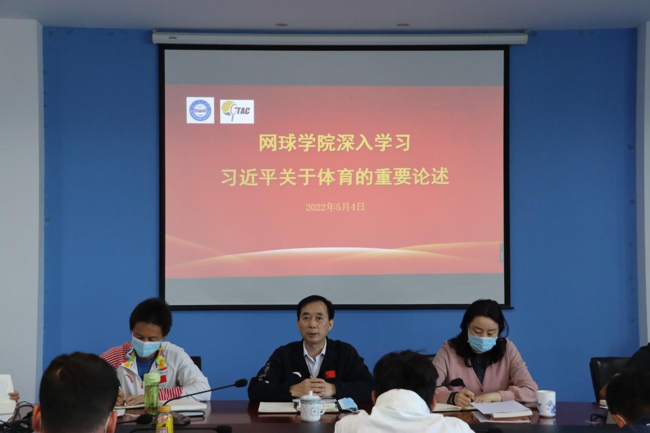 5月4日上午,网球学院在澳网厅召开学习会,学习贯彻习近平总书记在北京冬奥会、冬残奥会总结表彰大会上的重要讲话精神以及《深入学习习近平关于体育的重要论述》部分章节内容,网球学院全体管理干部、教练员参加了会议。直属党支部书记丁习明主持学习会并作专题宣讲。