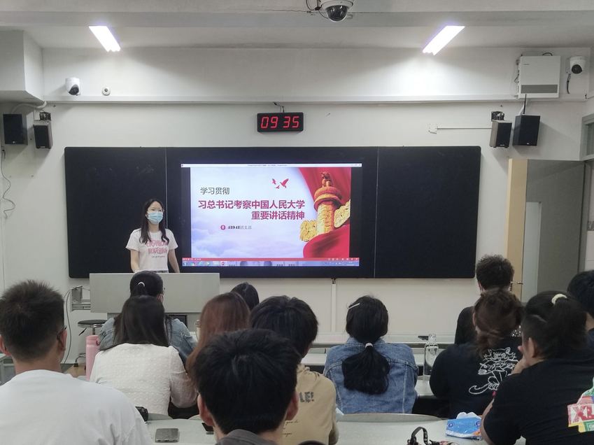 在五四青年节即将到来之际,习近平总书记来到中国人民大学考察,深情寄语广大青年。学院团委组织各团支部开展“学习习近平总书记在中国人民大学考察时的重要讲话精神”主题团日活动,通过学习,同学们纷纷表示要牢记总书记的殷殷嘱托,立鸿鹄志,做奋斗者,将青春奋斗融入党和人民事业中,“不负韶华,不负时代,不负人民,在青春的赛道上奋力奔跑,争取跑出当代青年的最好成绩!”