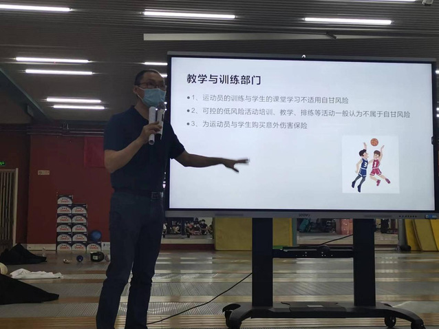 启动仪式结束后,由特邀体育经济与管理系实验室主任、系副主任陈建兵律师,结合运动队实际,为大家上了一堂题为《自甘风险在体育竞技领域的适用》的专题讲座,从而拉开了击剑学院法治宣传月的序幕。