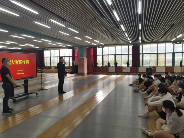仪式由击剑学院书记、院长沈朝阳主持,他先介绍了学校法治宣传周的主题、学习的目的、学习的现实意义,并结合击剑学院的实际,指出本学院法治宣传活动将持续一个月时间,采用“分享会”线下与微信群线上教育相结合方式进行,并动员全体运动员积极参与,加强法治知识学习,实现“法治教育为青春护航,守护我们共成长”的目的。