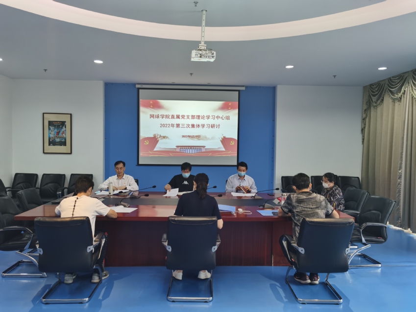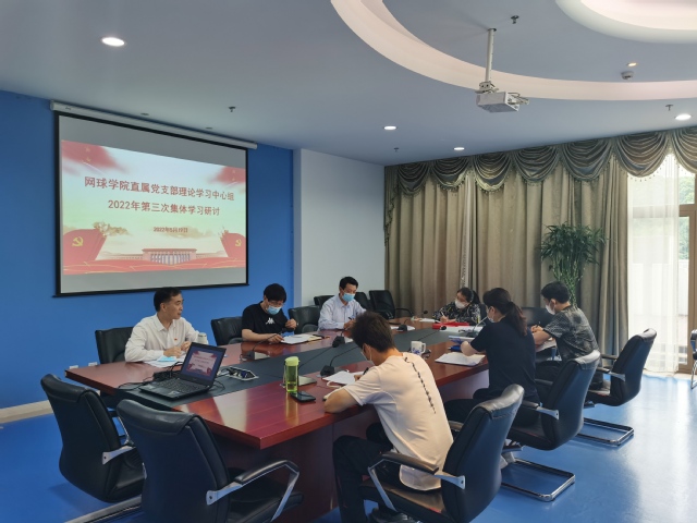 2022年5月19日下午,网球学院直属党支部理论学习中心组开展集体学习研讨。校党委常委、党委组织部部长陆玉林,校党委常委、党委宣传部部长、党委统战部部长许立俊出席会议并作指导,网球学院直属党支部书记丁习明、院长鲍勤、副院长姜惟、办公室主任韩燕成参加会议,学校巡学旁听工作组成员王一迪、寿嘉俊列席会议。会议由网球学院直属党支部书记丁习明主持。