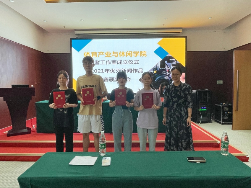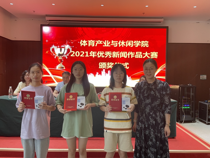为了加强学院宣传工作,规范宣传工作队伍建设,体育产业与休闲学院于6月1日下午2点在运动员转训中心第三会议室举行了体育产业与休闲学院记者工作室成立仪式暨2021年优秀新闻作品大赛颁奖大会。体育产业与休闲学院党总支书记王进、副书记杨丽丽、学院团委副书记刘雪薇、辅导员宋佳、记者工作室指导教师、学生团队以及优秀新闻作品大赛获奖学生参加本次活动。大会由记者工作室指导教师刘雅巍主持。