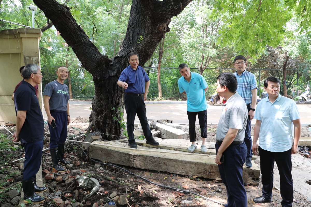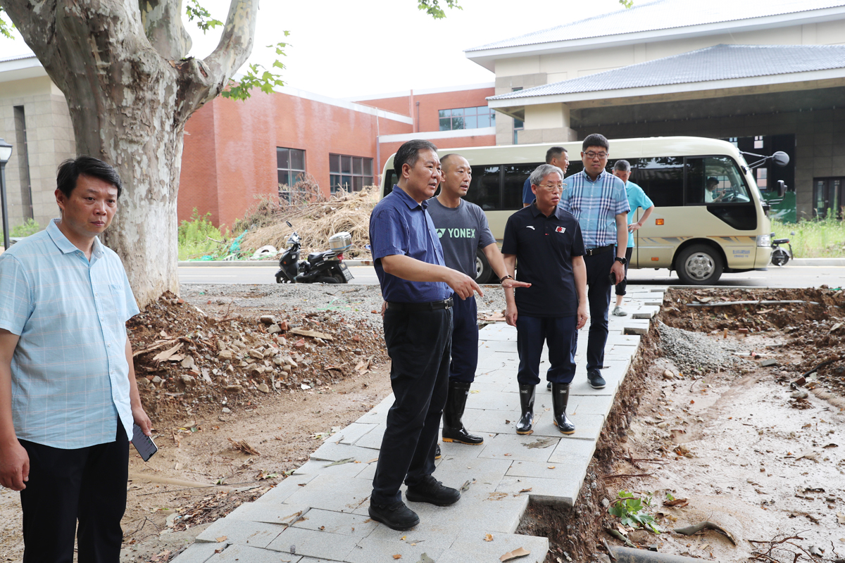 6月24日上午,校党委书记朱传耿,校领导金松、黄步龙带队开展暴雨后安全检查。