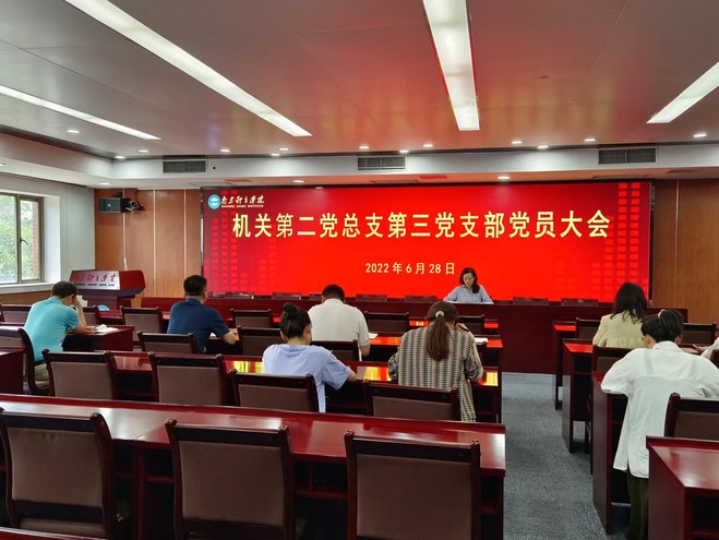 6月28日下午,机关第二党总支第三党支部在办公楼201会议室召开全体党员大会。支部书记王利雅主持会议,全体党员出席会议。