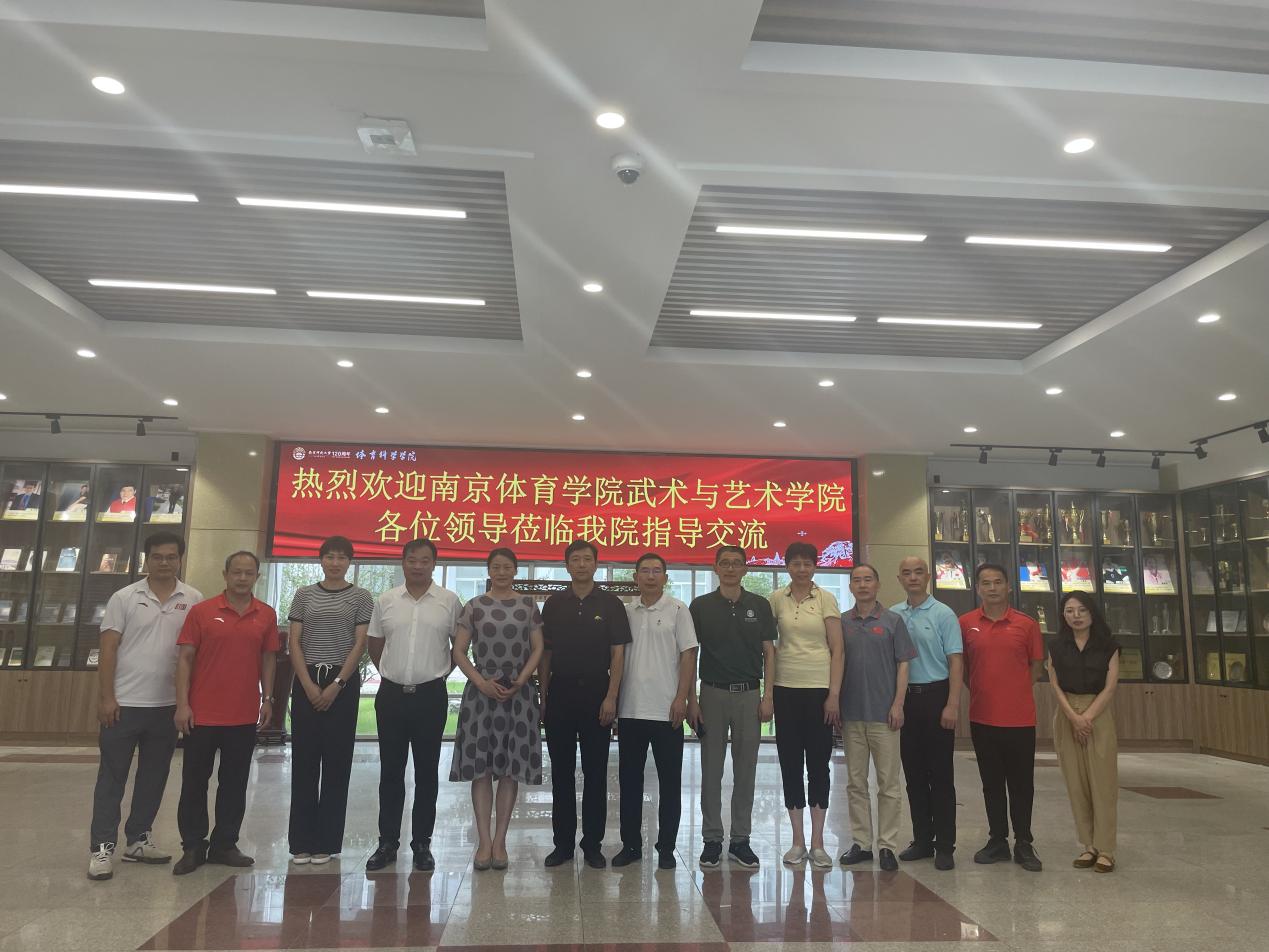 7月4日下午,武术与艺术学院党总支委员在总支书记殷怀刚的带领下,一行6人赴南京师范大学体育科学学院考察交流。双方就党建工作、学院发展、教学科研、体育场馆特别是二级学院制度建设等方面进行了深入交流。