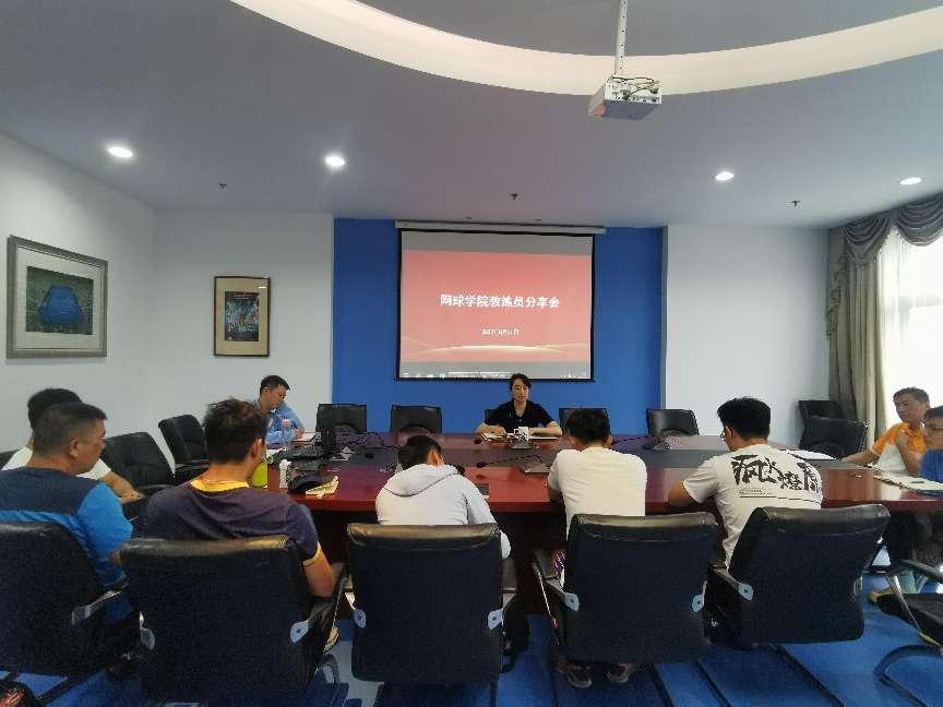 为加强网球队教练员队伍建设,提高教练员执教能力,进一步扩大外出学习培训的效果,实现学习成果共享,8月31日,网球学院在澳网厅召开了教练员外出学习分享会,网球学院院长鲍勤和网球队全体教练员出席会议。会议由鲍勤院长主持。