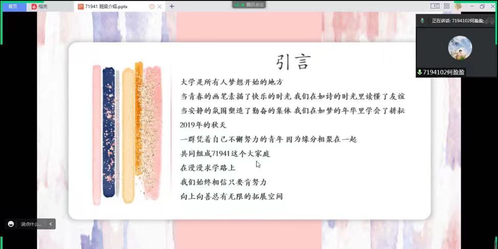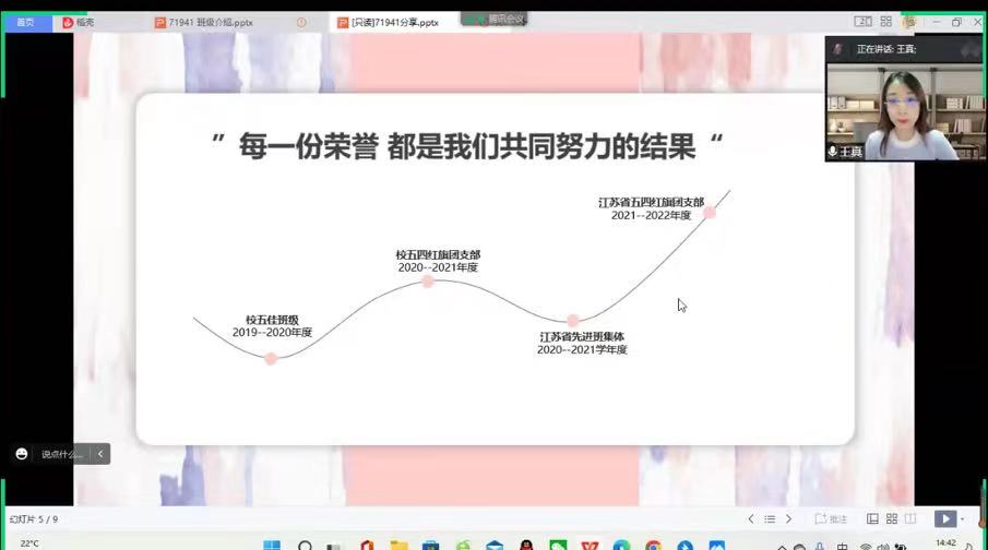 19级新闻一班班主任王真老师简要介绍了班级概况和班级人员发展情况,在王真老师的带领下71941班已先后获得从校级到省级的荣誉。王真老师指出班级发展需要各方力量凝心聚力,对22级新生提出希望和祝福。