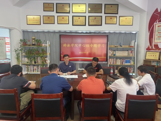 9月3日上午,游泳学院党总支召开中心组学习扩大会,结合《习近平谈治国理政》第四卷学习,深入学习领会习近平总书记在省部级主要领导干部专题研讨班上的重要讲话精神,游泳学院全体管理干部参加会议。