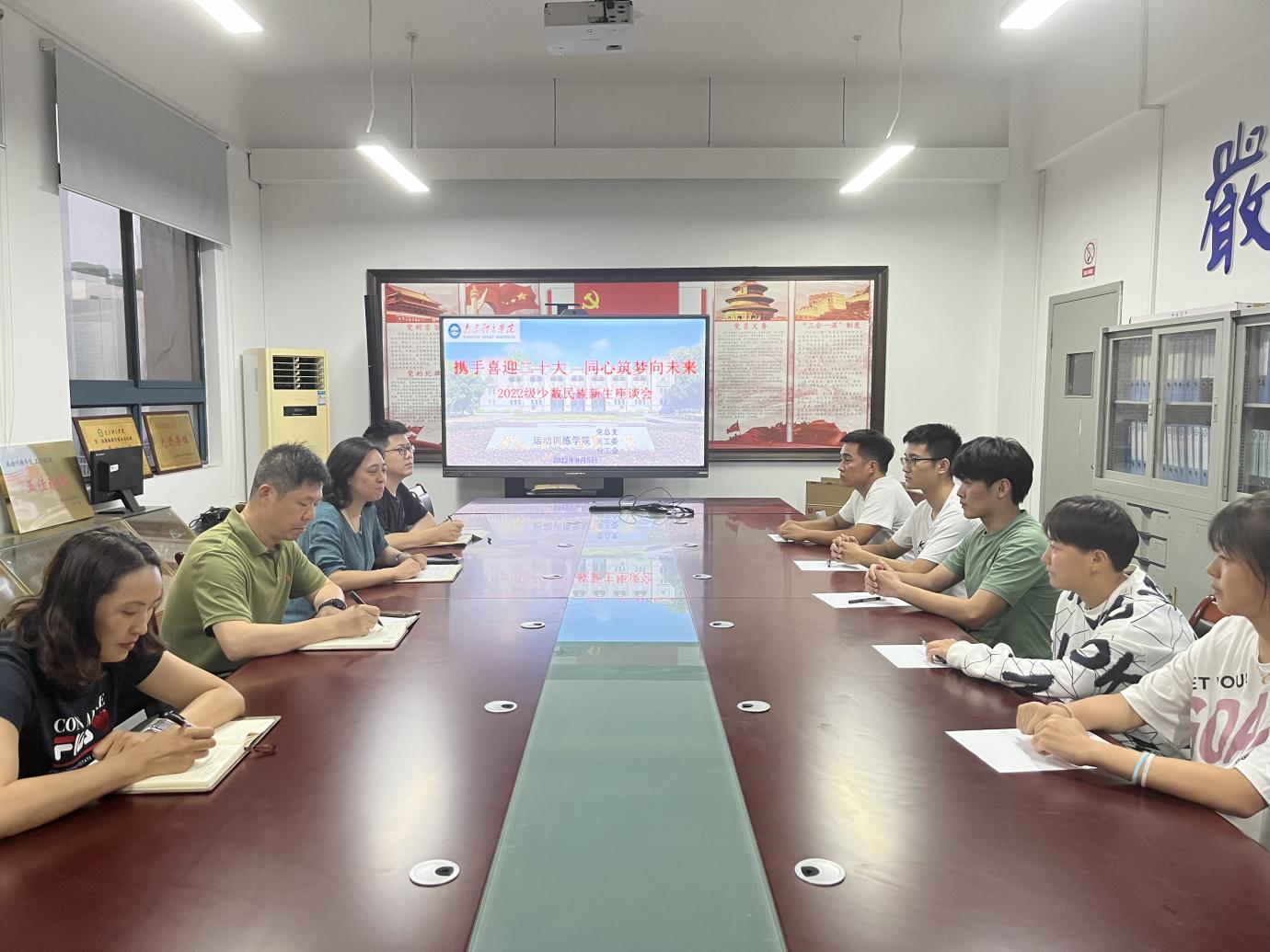 奔向36365,拥抱未来。运动训练学院2022级210名新生如期相约36365最新线路检测中心仙林校区。为深入了解新生入学一周以来学习、生活等有关情况,听取大家对学院在教学、管理、服务等方面的意见和建议,9月5日晚,由运动训练学院党总支、关工委、分工会联合组织的“携手喜迎二十大 同心筑梦向未来”——2022级少数民族新生座谈会在仙林校区举行。运动训练学院党总支书记张亚军、副书记喻菊出席会议,学院团委副书记吴海艳、2022级辅导员刘宸,6名少数民族新生参加座谈会。