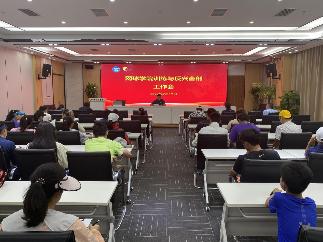 9月19日,网球学院召开训练与反兴奋剂工作会,网球学院全体管理干部、教练员、运动员参加会议。会议由网球学院办公室主任韩燕成主持。
