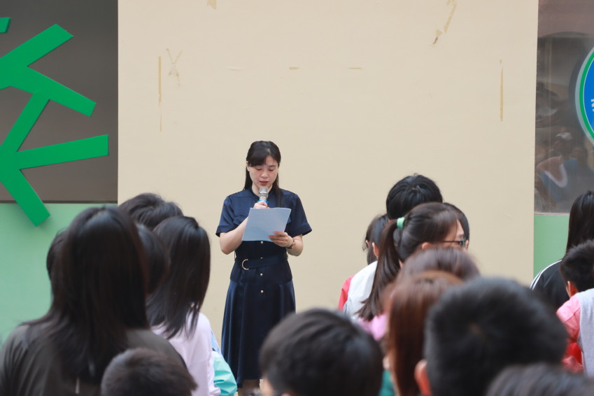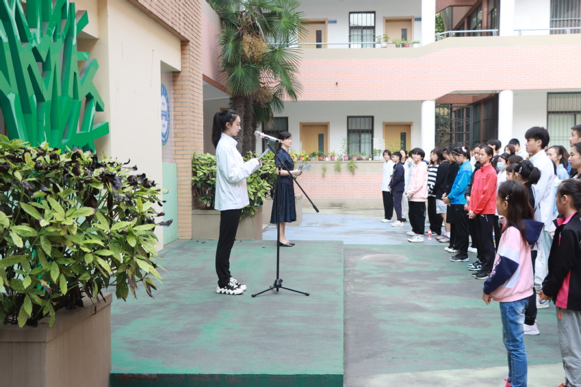升旗手,高三年级艺术体操队张子颖同学在国旗下发言。她认为,作为一名学生,只有通过不断的学习才能增长知识,培养品德,锻炼才干,成为祖国需要的优秀人才。作为一名运动员,唯有砥砺前行、永不言弃,方能不负厚望,不负初心。