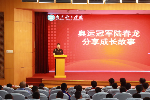 陆春龙分享了他的成长故事。他深情回忆了自八岁时来到江苏省少体校学习训练,到2008年北京奥运会夺冠的奋斗历程,简要总结了一个优秀运动员成长必须要具备身体素质、主观能动性、智慧思维、心理素质、把握机遇、伯乐提携等六大要素。他勉励在场的小运动员们要做一名有梦想、有思想、有办法、有奋斗、有文化的运动员,并寄语他们:“百舸争流,奋楫者先;千帆竞发;勇进者胜。”陆春龙的分享妙趣横生,深入浅出,引得在场师生们频频颔首,不时响起阵阵掌声。