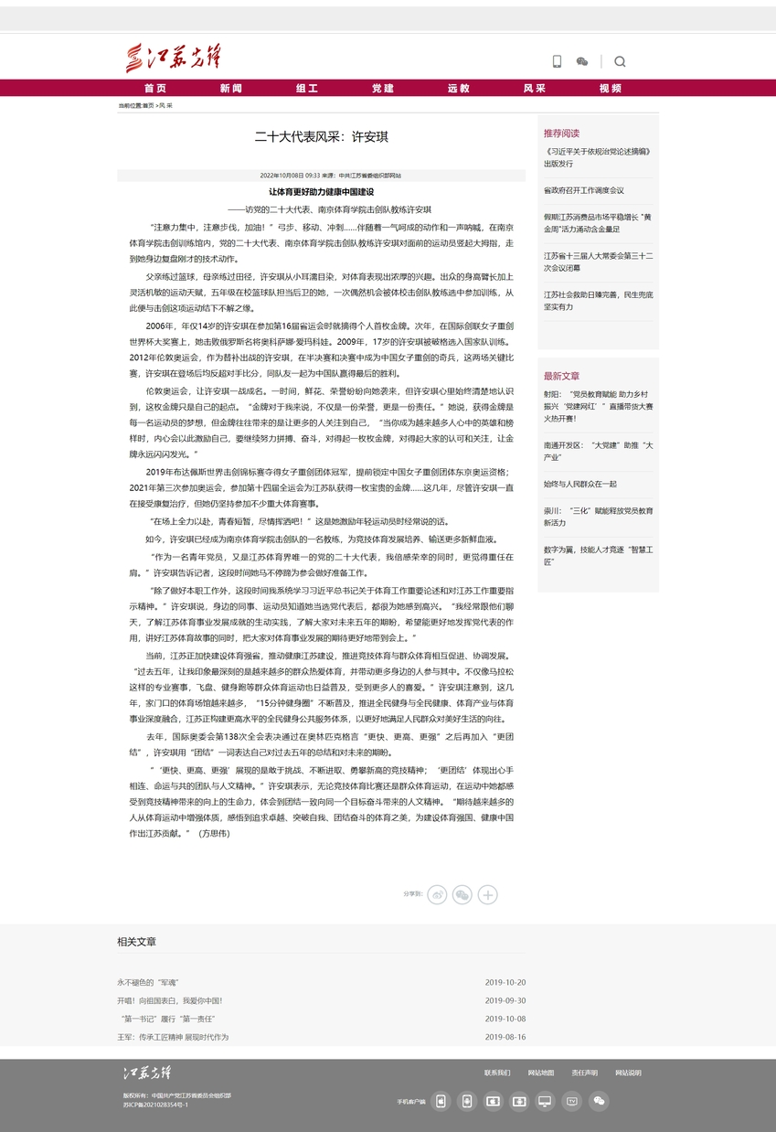 中共江苏省委新闻网《许安琪:让体育更好助力健康中国建设》