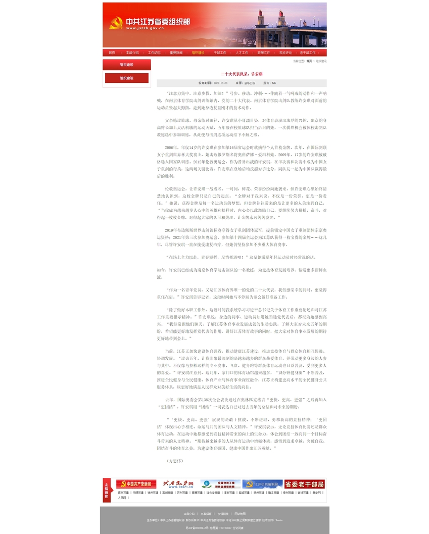 中共江苏省委组织部网站《二十大代表风采:许安琪》