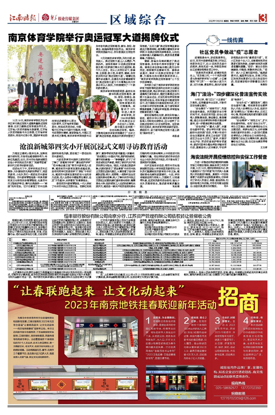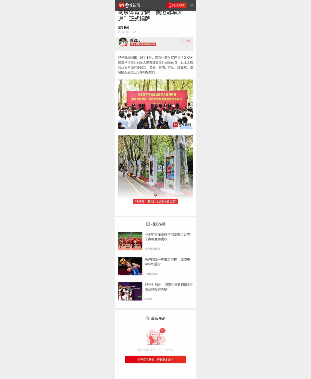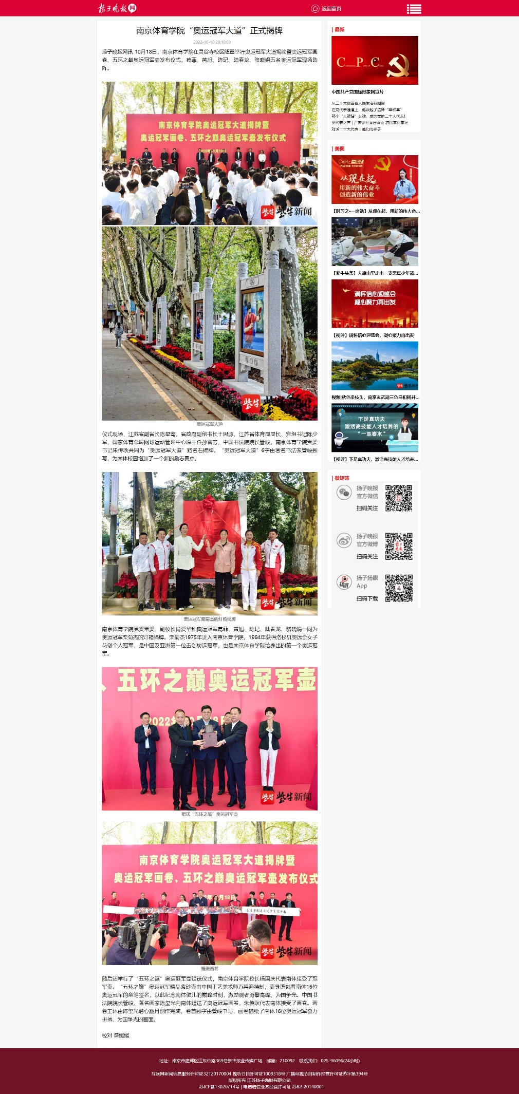 扬子晚报:36365最新线路检测中心“奥运冠军大道”正式揭牌